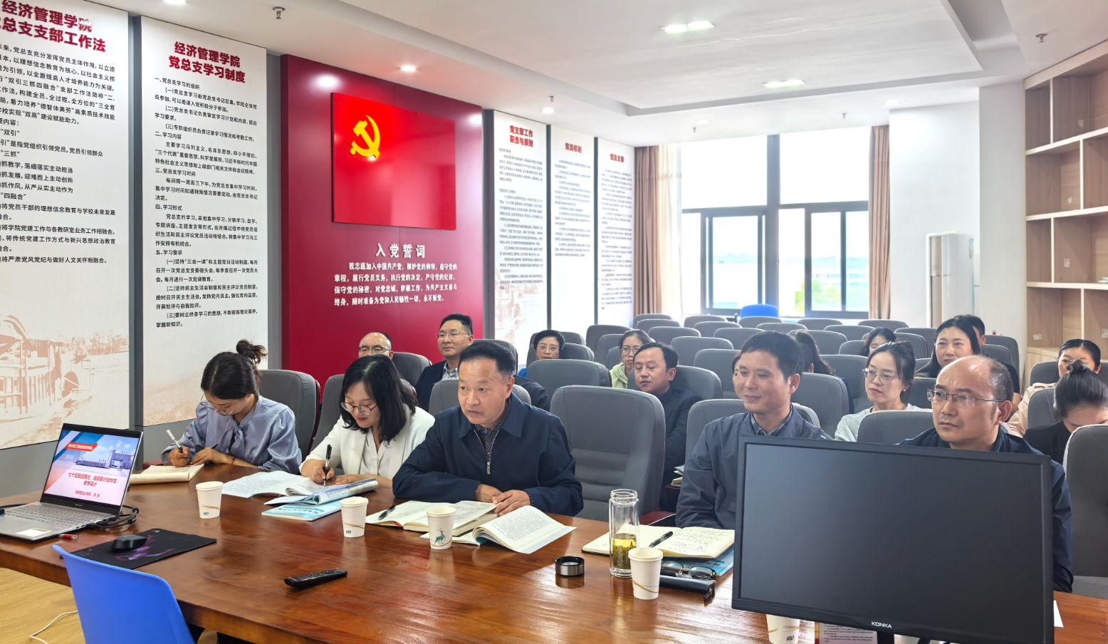 为深入学习贯彻习近平总书记关于新时代学校思政课建设的重要指示精神,提高“形势与政策”课教学质量,10月9日下午,马克思主义学院在综合办公楼426会议室举行“形势与政策”课集体备课会。学校党委书记刘志勇,党委副书记、纪委书记郑辅春,党委委员、副院长邓启华出席会议并进行指导。马克思主义学院全体思政课专兼职教师参加备课会。