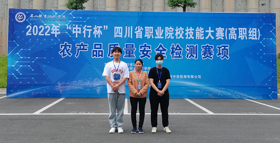 2022年4月22日-24日,由四川省教育厅主办的2022年“中行杯”四川省职业院校技能大赛(高职组)农产品质量安全检测赛项在眉山职业技术学院举行。由学校药品与环境工程学院张华芳、毛娅老师指导的陈福维、丁瑜同学组成代表队参加比赛,荣获大赛团体“二等奖”。