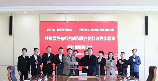 4月20日,学校与四川泸天化创新研究院有限公司共建绿色有机合成和复合材料改性实验室签约暨揭牌仪式在综合办公楼第一会议室举行。四川泸天化创新研究院有限公司副总经理蒋弟勇、高级研究员辜凯德,学校党委副书记、院长文申柳参加仪式。仪式由副院长王志斌主持。