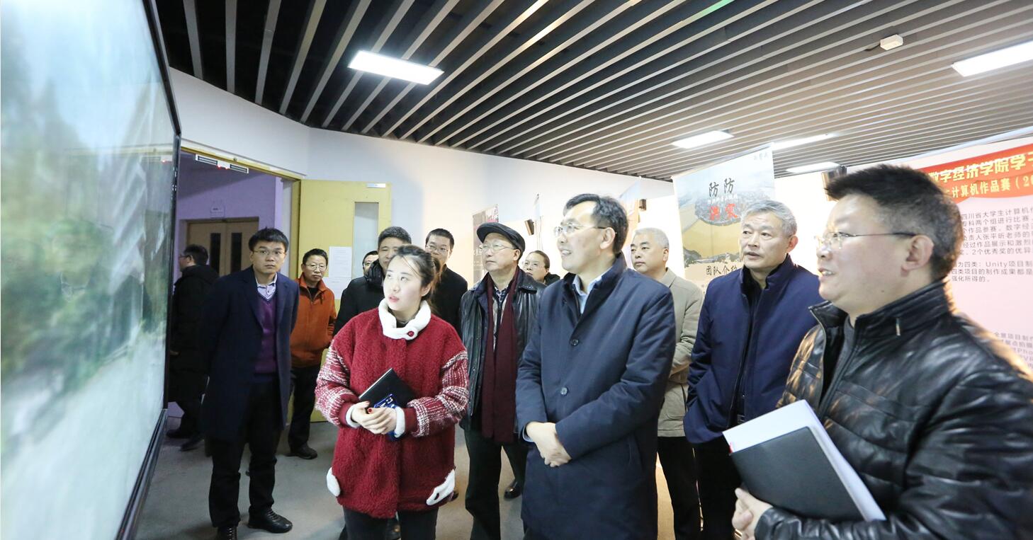 12月30日下午,省教育厅副厅长张澜涛,省政府原副秘书长、北京巴蜀书画艺术院院长王七章,市委常委、宣传部部长刘云莅临学校调研指导工作,学校党委副书记陈淑娟,副院长蒲开伦、王志斌、文申柳、邓启华陪同调研。