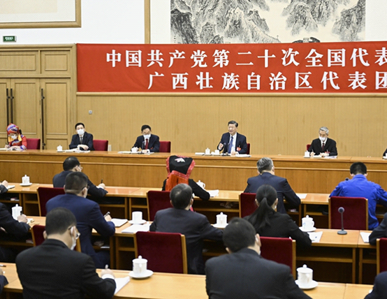 10月17日,习近平同志参加党的二十大广西代表团讨论。新华社记者 鞠鹏 摄